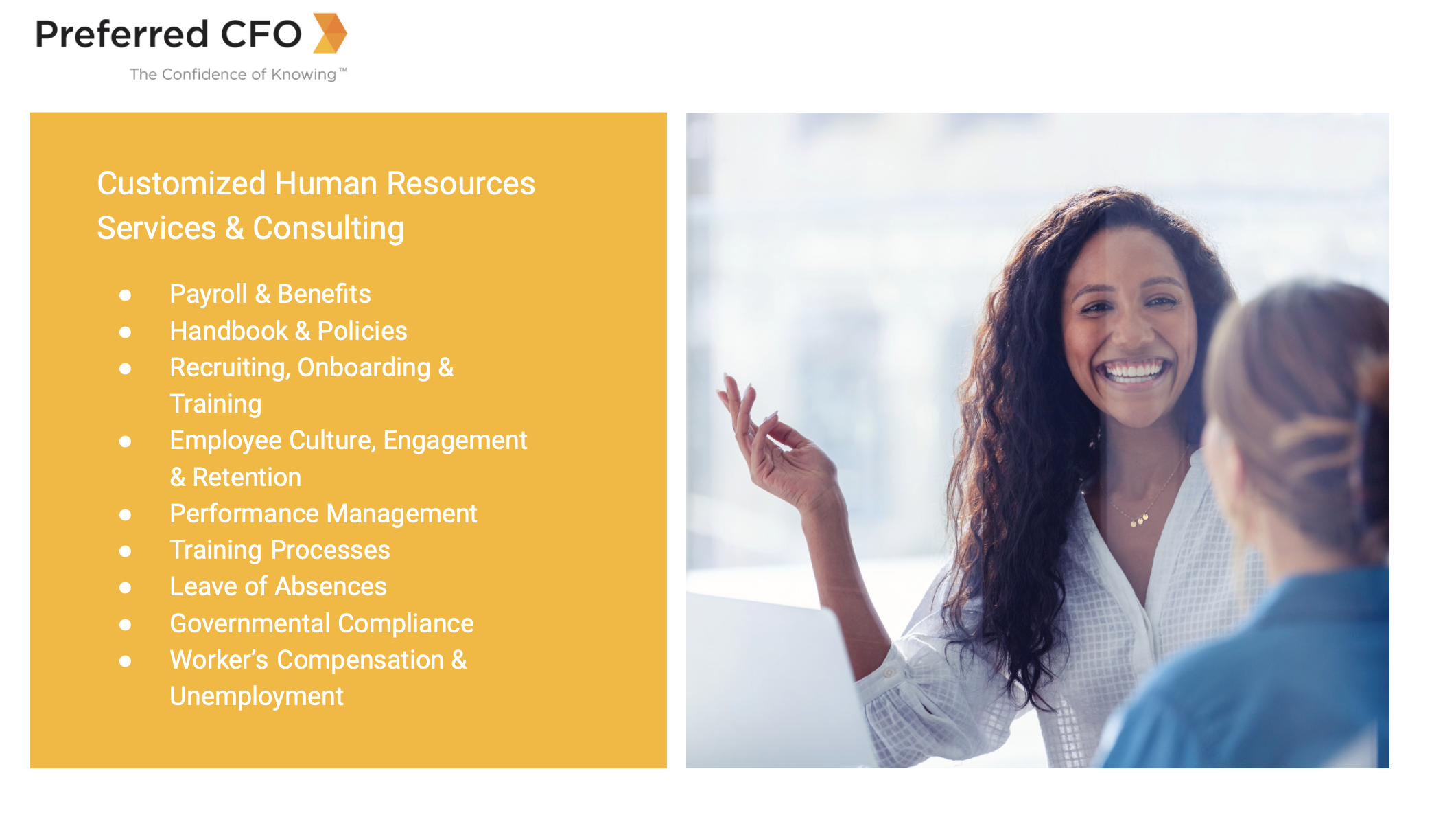 For more information about Preferred CFO’s outsourced HR solutions, reach out to Tom at toma@preferredcfo.com or click the button below to learn more.